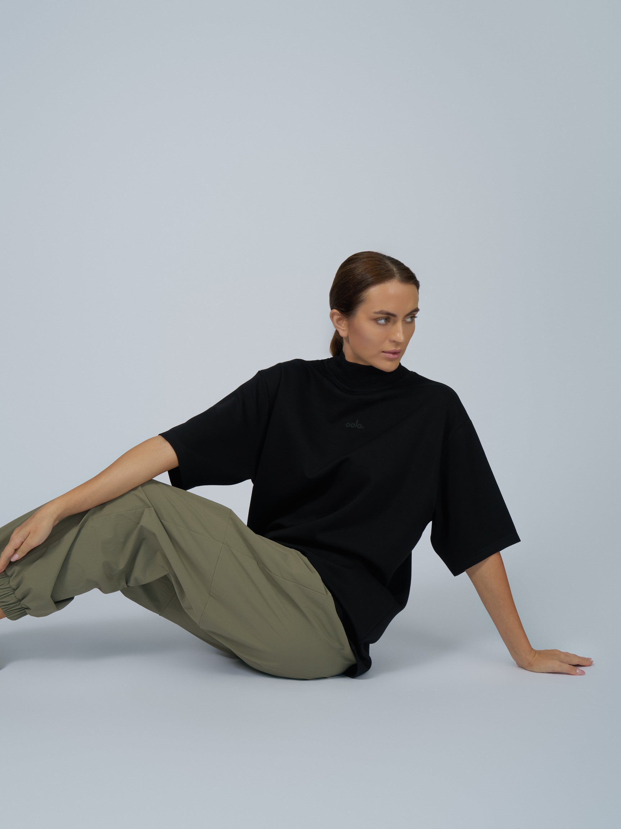This loose-fit performance tee delivers effortless coverage with a mock neck, dropped shoulders, and easy 3/4 sleeves. Lightweight, breathable, and hip-length, it’s made to flow with you through every run, ride, and rep.