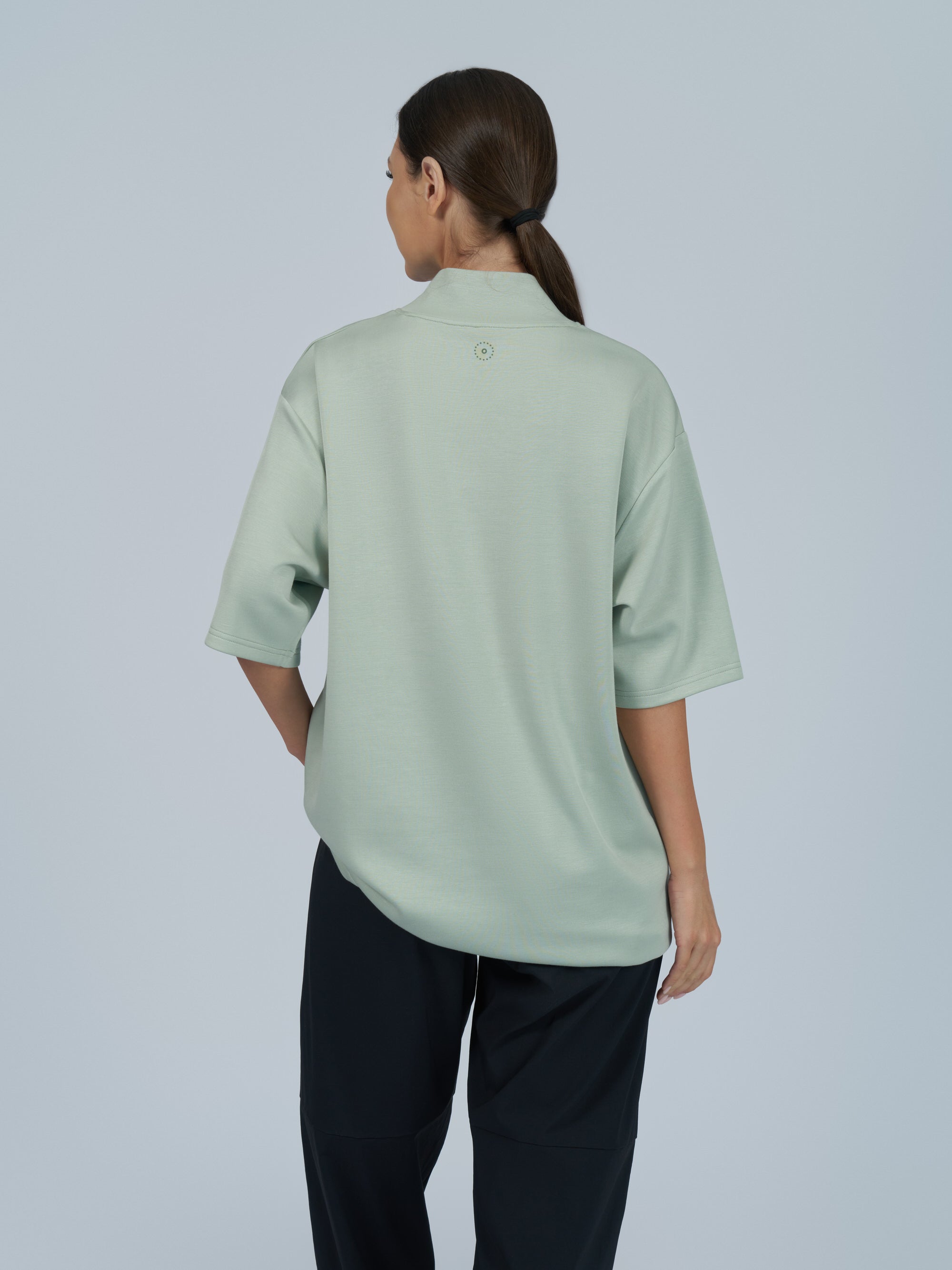 This loose-fit performance tee delivers effortless coverage with a mock neck, dropped shoulders, and easy 3/4 sleeves. Lightweight, breathable, and hip-length, it’s made to flow with you through every run, ride, and rep.