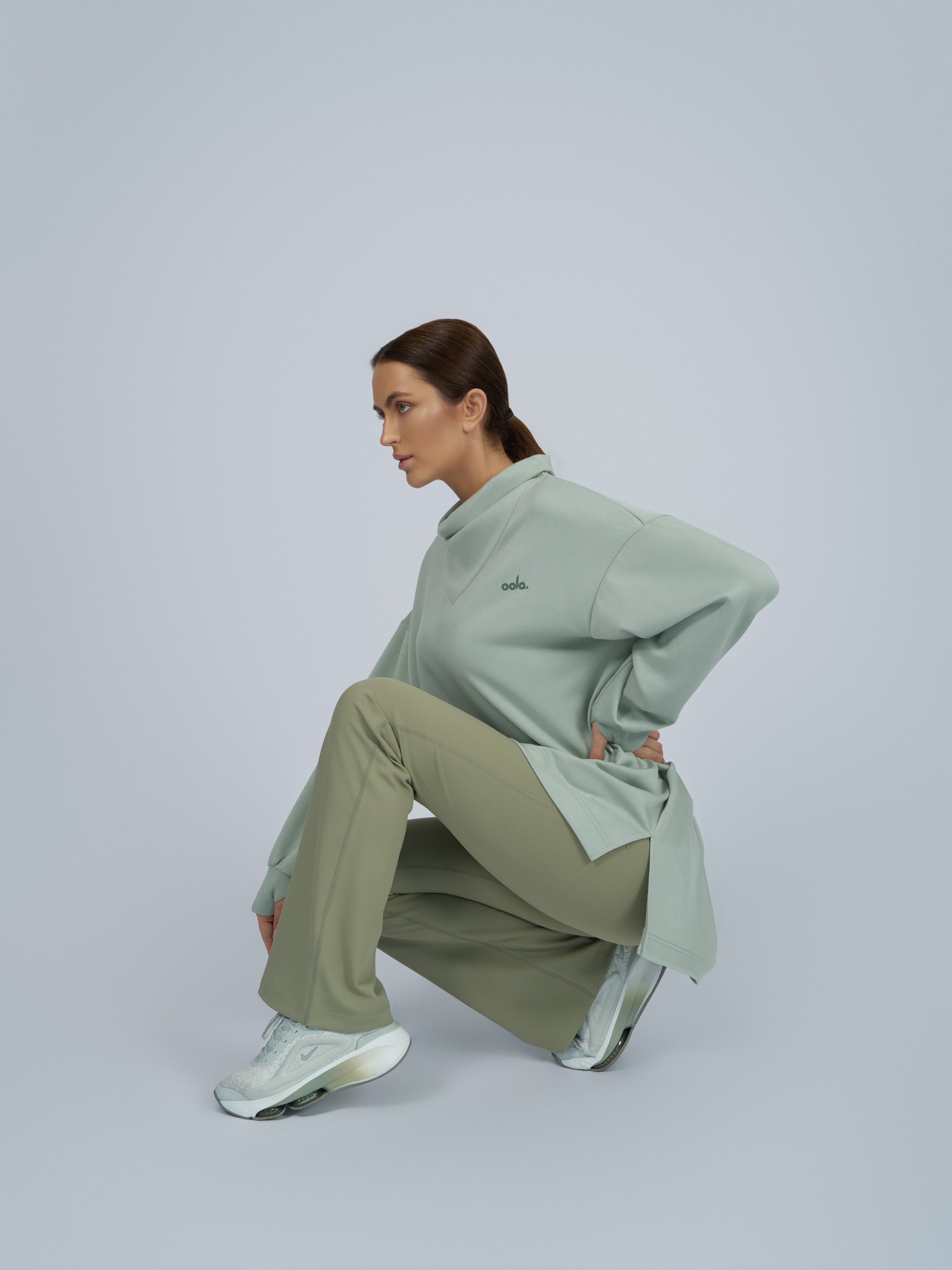 This premium lounge top is designed to move with you through every moment of recharge. Crafted from soft, lightweight fleece with a relaxed silhouette, it features a graceful cowl neck, fluid dropped shoulders, and a back pleat for an elevated drape. Thumbholes, side slits, and a stepped hem complete the look — blending comfort and intention in every detail.